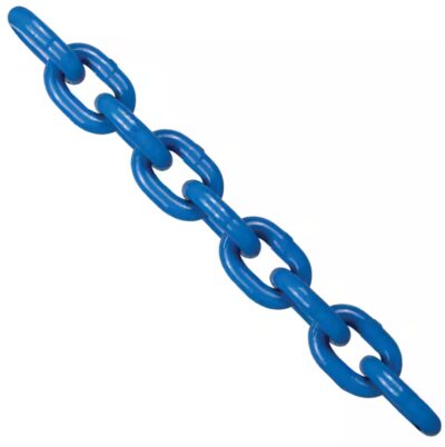 Las cadenas de acero de alta resistencia grado 100 están fabricadas con acero aleado templado y revenido, lo cual les brinda gran resistencia a la tracción y una muy buena tenacidad.